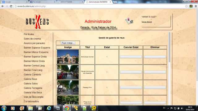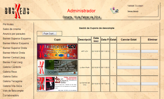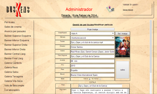 Disposa d'un Back-End per tal de mantenir continguts, cartellera de cine, galeries d'imatges, vals de descompte, banners, etc.